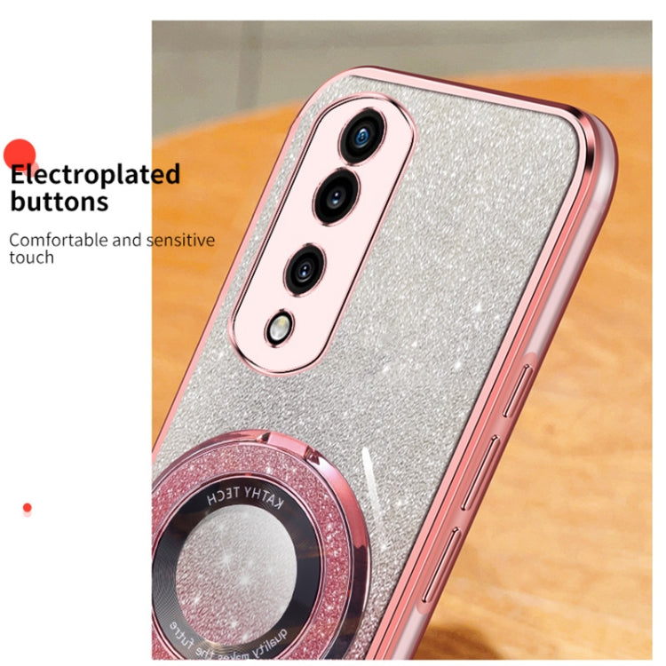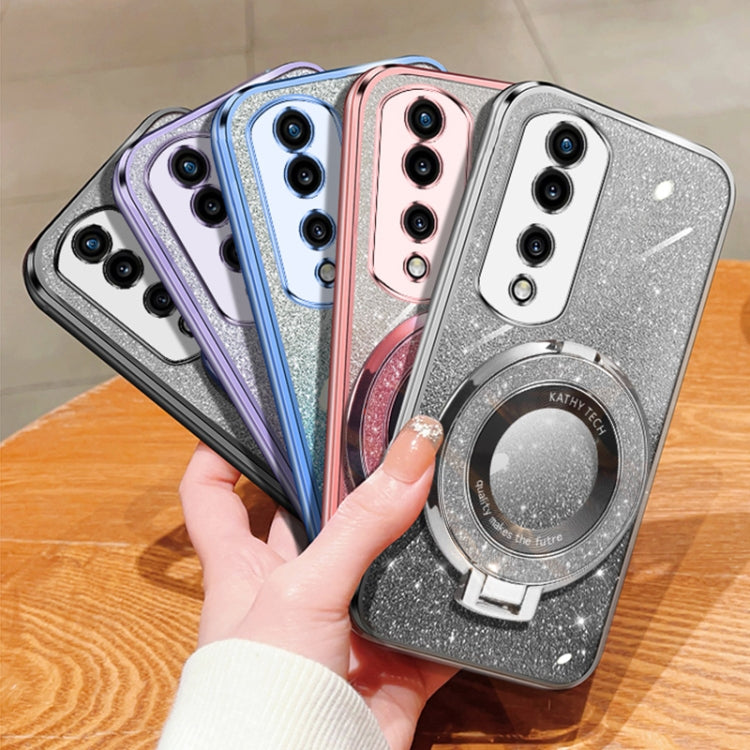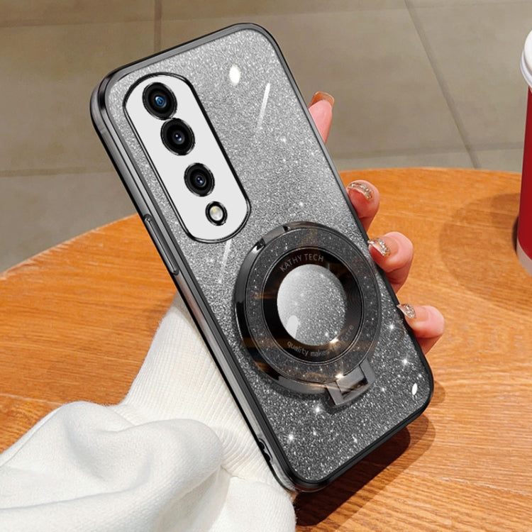 For Honor 70 Pro Plated Gradient Glitter Round Holder TPU Phone Case(Black)