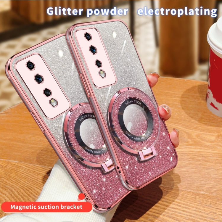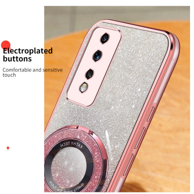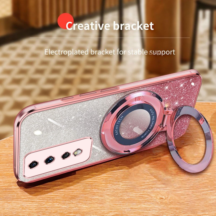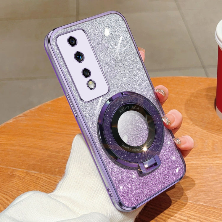 For Honor 80 GT Plated Gradient Glitter Round Holder TPU Phone Case(Purple)