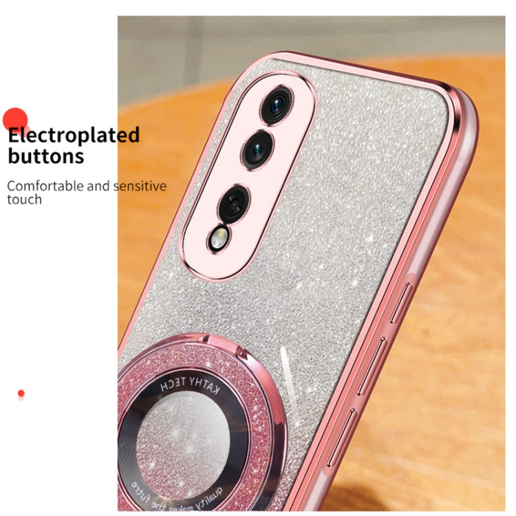 For Honor 80 Pro Plated Gradient Glitter Round Holder TPU Phone Case(Sierra Blue)