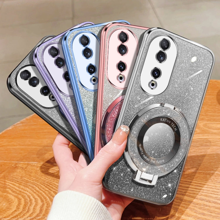For Honor 90 Plated Gradient Glitter Round Holder TPU Phone Case(Pink)