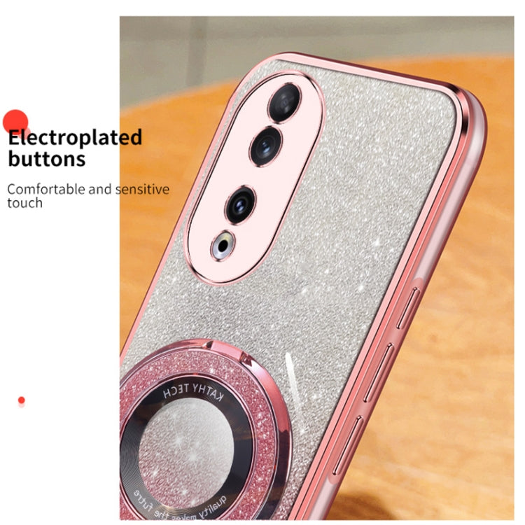 For Honor 90 Plated Gradient Glitter Round Holder TPU Phone Case(Silver)