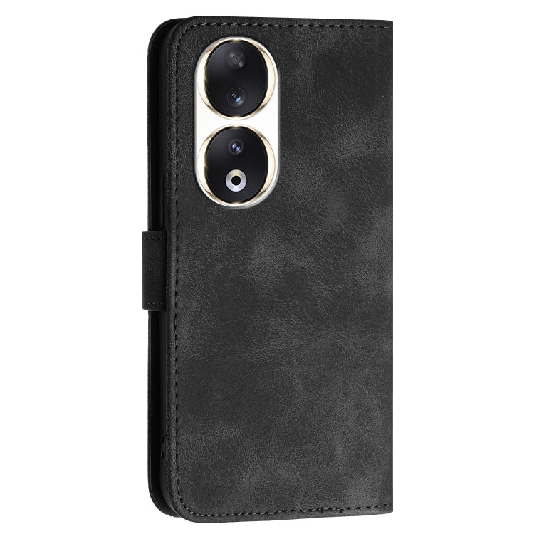 For Honor 90 Grid Butterfly Embossed Pattern Leather Phone Case with Lanyard(Black)