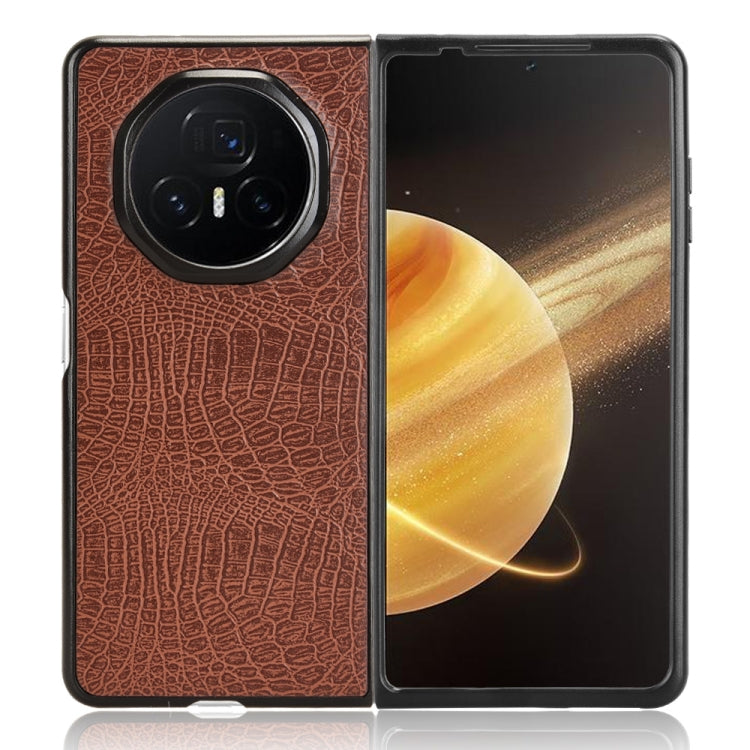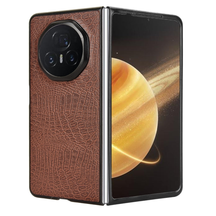 For Honor Magic V3 Crocodile Texture Back Cover Phone Case(Brown)