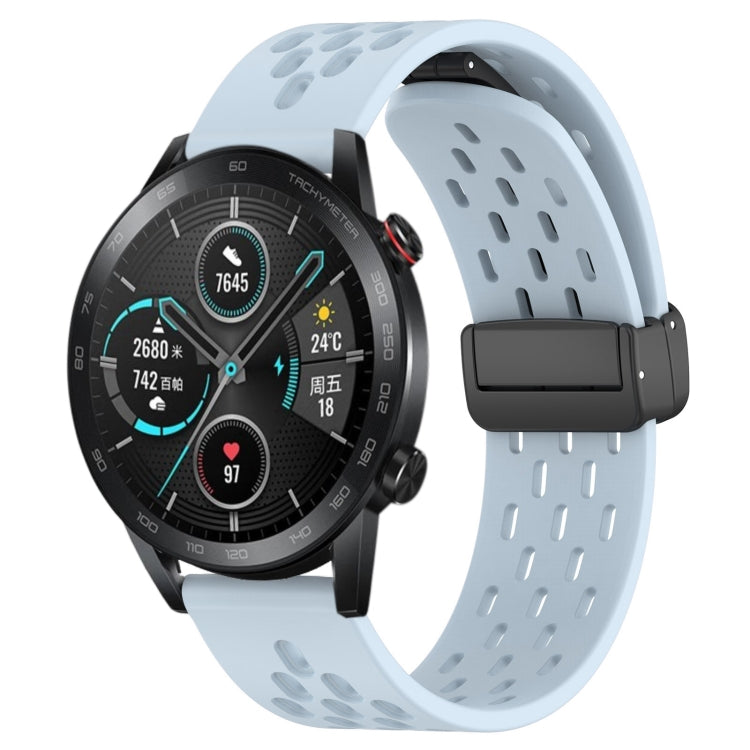 For Honor Magic Watch 2 46mm 22mm Folding Magnetic Clasp Silicone Watch Band(Light Blue)