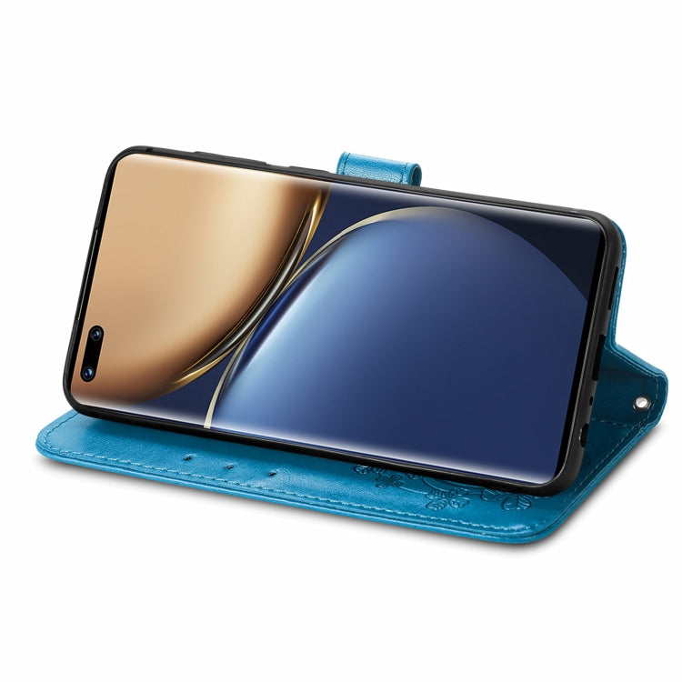 For Honor Magic3 Four-leaf Clasp Embossed Buckle Leather Phone Case(Blue)