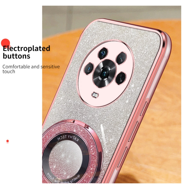 For Honor Magic4 Plated Gradient Glitter Round Holder TPU Phone Case(Purple)
