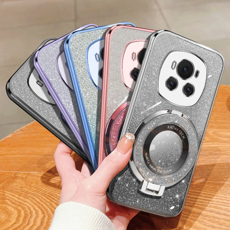 For Honor Magic6 Plated Gradient Glitter Round Holder TPU Phone Case(Purple)