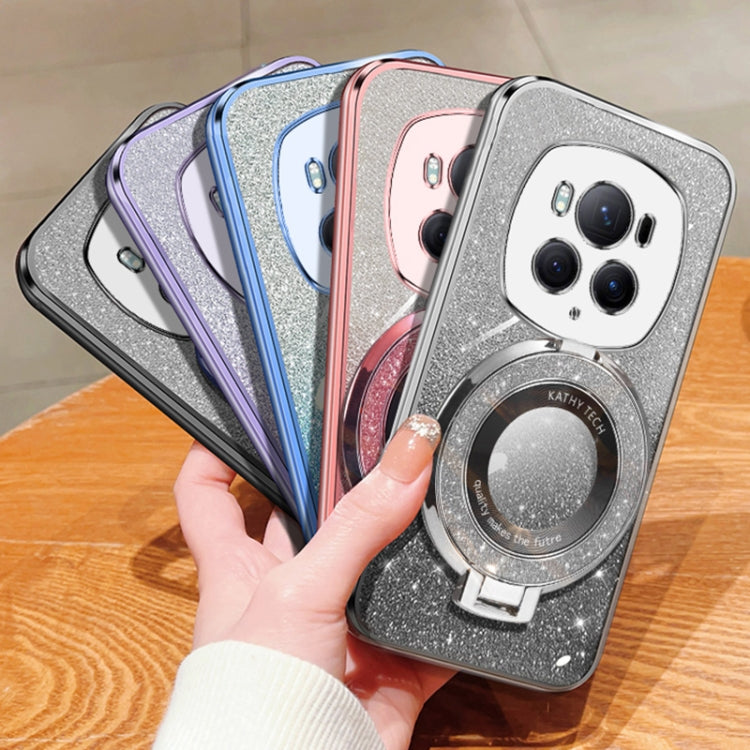 For Honor Magic6 Pro Plated Gradient Glitter Round Holder TPU Phone Case(Sierra Blue)