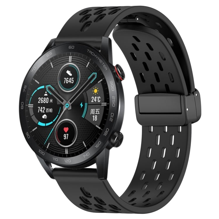 For Honor MagicWatch2 42mm 20mm Folding Magnetic Clasp Silicone Watch Band(Black)