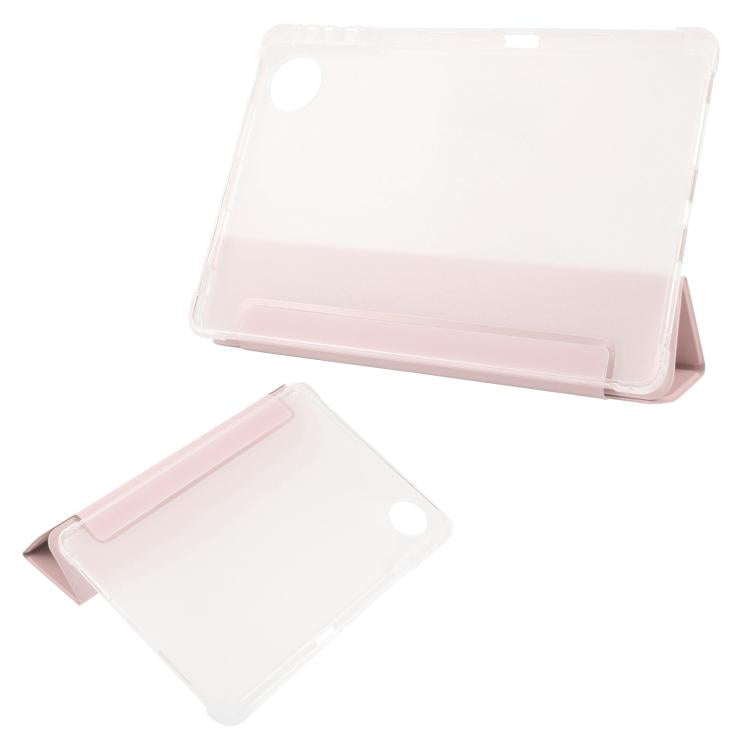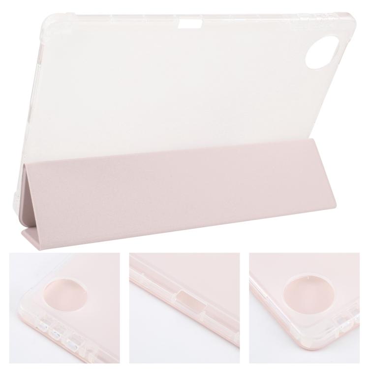 For Honor Pad 10 12.1 3-fold Clear TPU Smart Leather Tablet Case with Pen Slot(Sand Pink)