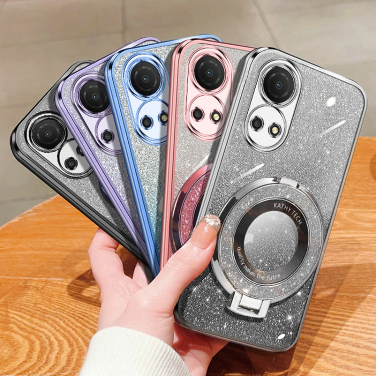 For Honor Play 50 Plus Plated Gradient Glitter Round Holder TPU Phone Case(Black)