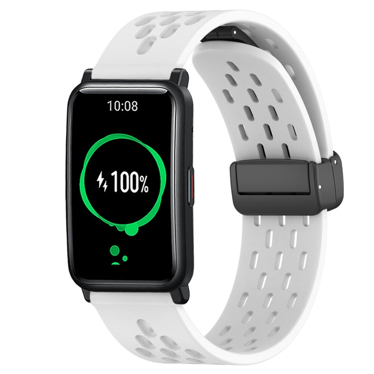 For Honor Watch ES 20mm Folding Magnetic Clasp Silicone Watch Band(White)