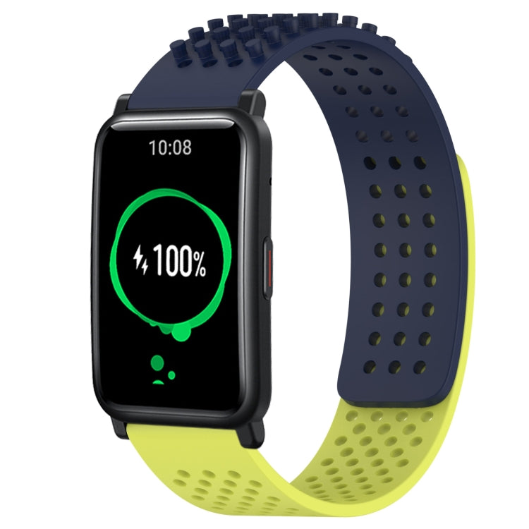 For Honor Watch ES 20mm Holes Breathable 3D Dots Silicone Watch Band(Midnight Blue+Lime Green)