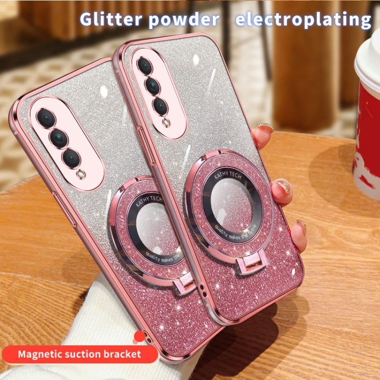 For Honor X20 SE Plated Gradient Glitter Round Holder TPU Phone Case(Black)