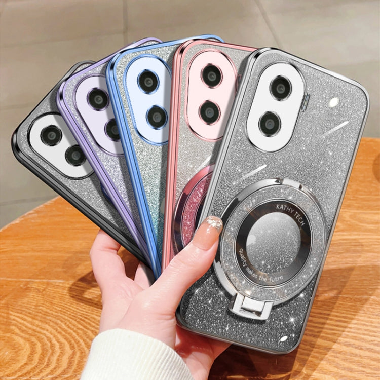 For Honor X40i Plated Gradient Glitter Round Holder TPU Phone Case(Pink)