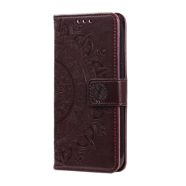 For Honor X6b 4G Global Totem Flower Embossed Leather Phone Case with Lanyard(Brown)