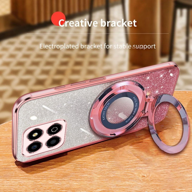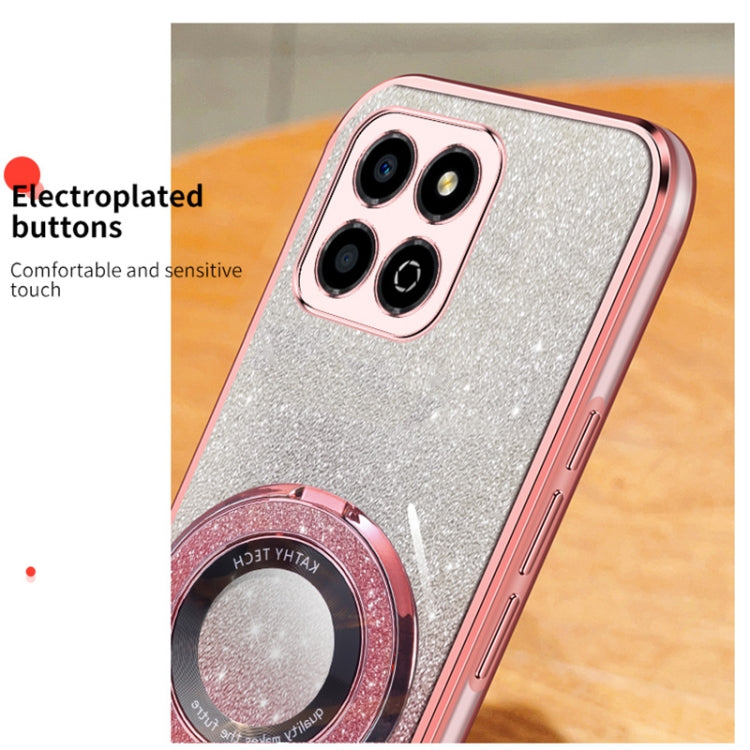 For Honor X8 5G / Play 30M Plated Gradient Glitter Round Holder TPU Phone Case(Silver)