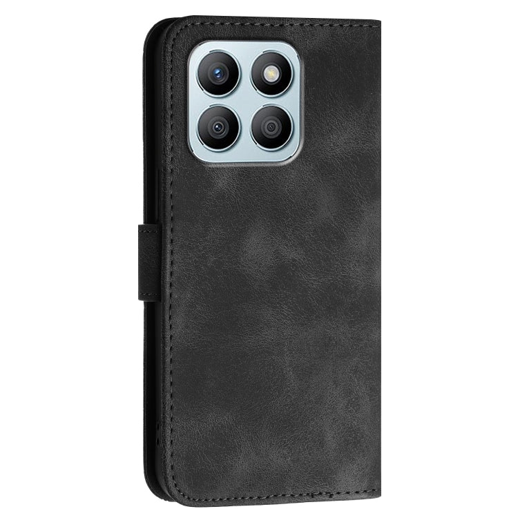 For Honor X8b Grid Butterfly Embossed Pattern Leather Phone Case with Lanyard(Black)