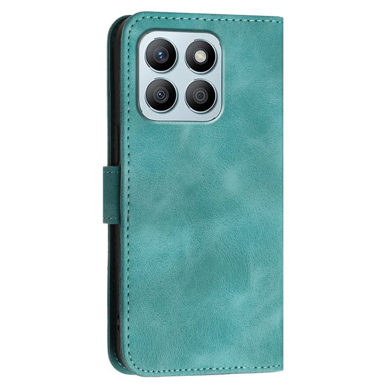 For Honor X8b Grid Butterfly Embossed Pattern Leather Phone Case with Lanyard(Light Blue)