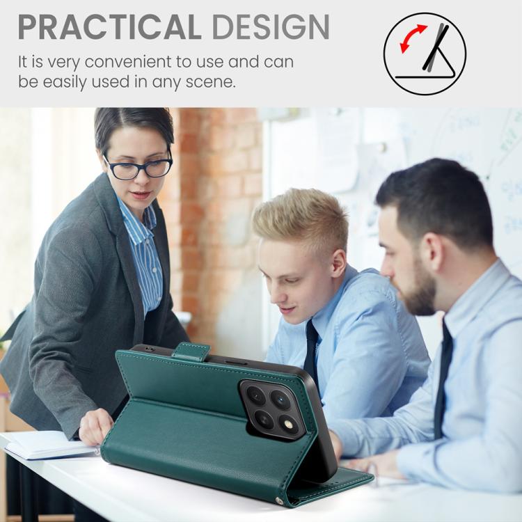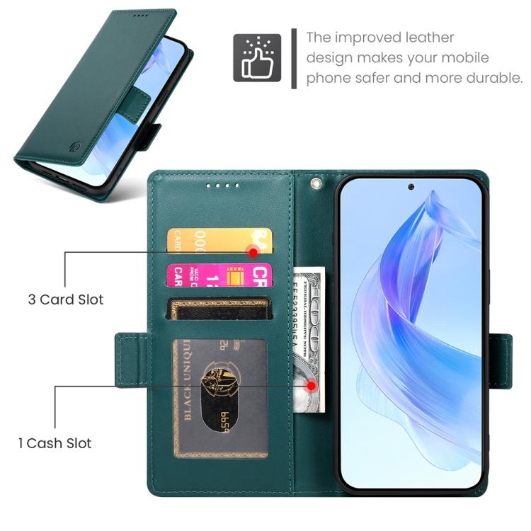For Honor X8c 4G Side Buckle Magnetic Frosted Leather Phone Case(Dark Green)
