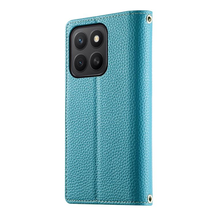 For Honor X8c 4G Stitching Multi-card Zipper Wallet Leather Phone Case with Short Strap(Blue)