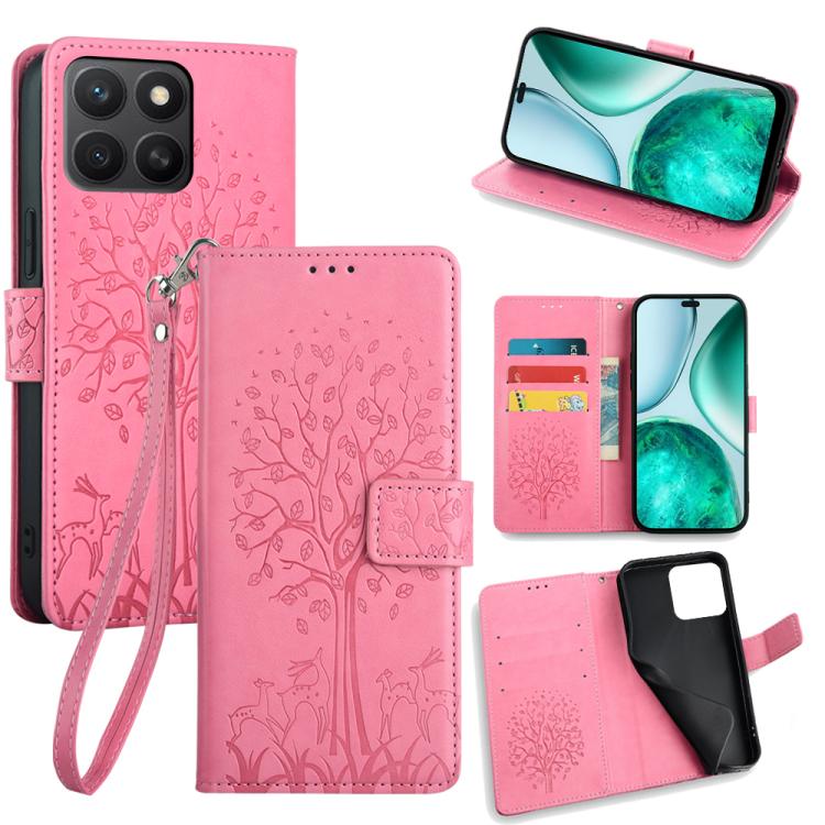 For Honor X8c 4G Tree & Deer Embossed Leather Phone Case(Pink)