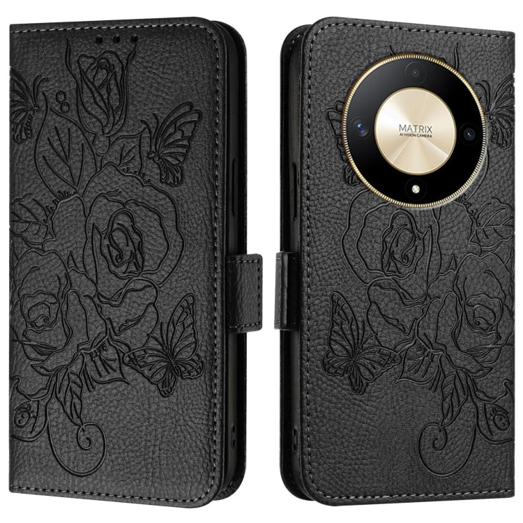 For Honor X9b 5G / Magic6 Lite 5G Embossed Rose RFID Anti-theft Leather Phone Case(Black)