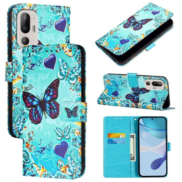 For HTC U24 Pro Colored Drawing Pattern Plain Weave Leather Phone Case(Love Butterfly)