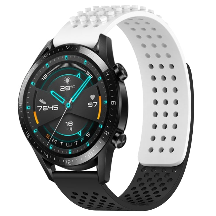 For Huawei GT2 46mm 22mm Holes Breathable 3D Dots Silicone Watch Band(White+Black)