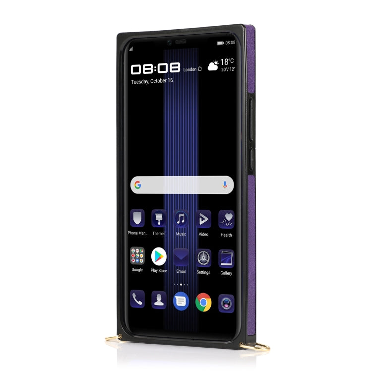 For Huawei Mate 20 Lite Wrist Strap PU+TPU Shockproof Protective Case with Crossbody Lanyard & Holder & Card Slot(Purple)