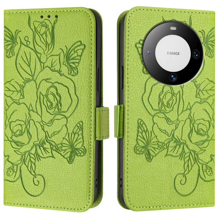 For Huawei Mate 60 Pro / 60 Pro+ Embossed Rose RFID Anti-theft Leather Phone Case(Green)