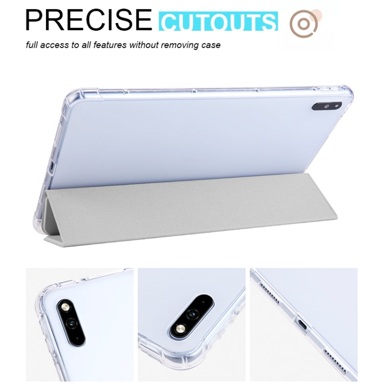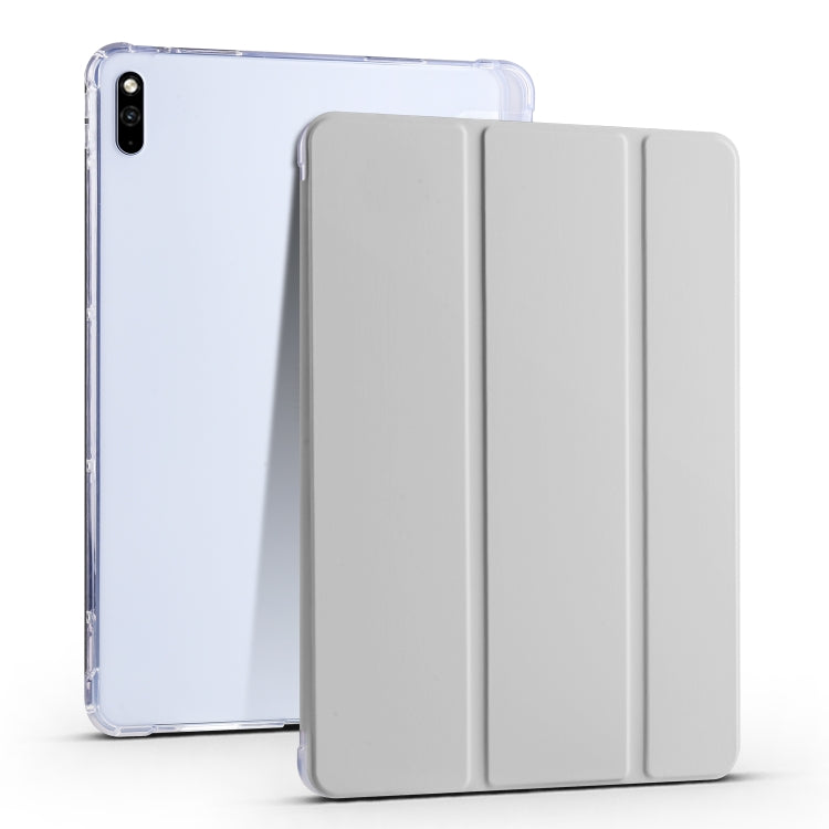 For Huawei MatePad 10.4 3-folding Transparent TPU Smart Leather Tablet Case(Grey)