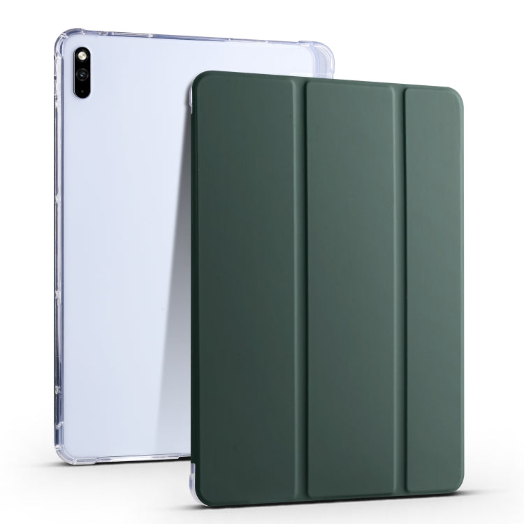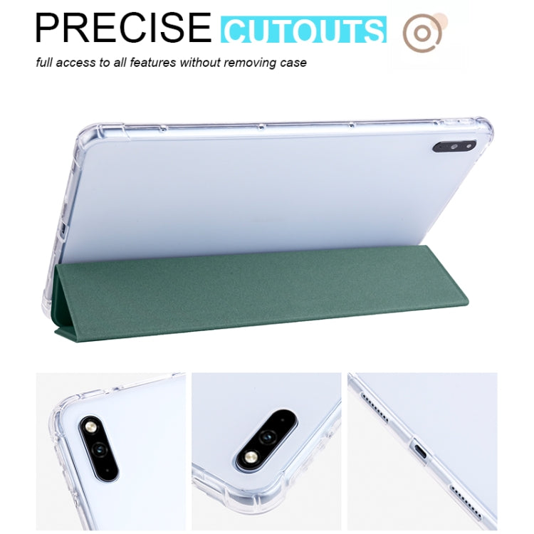 For Huawei MatePad 10.4 3-folding Transparent TPU Smart Leather Tablet Case(Pine Needle Green)