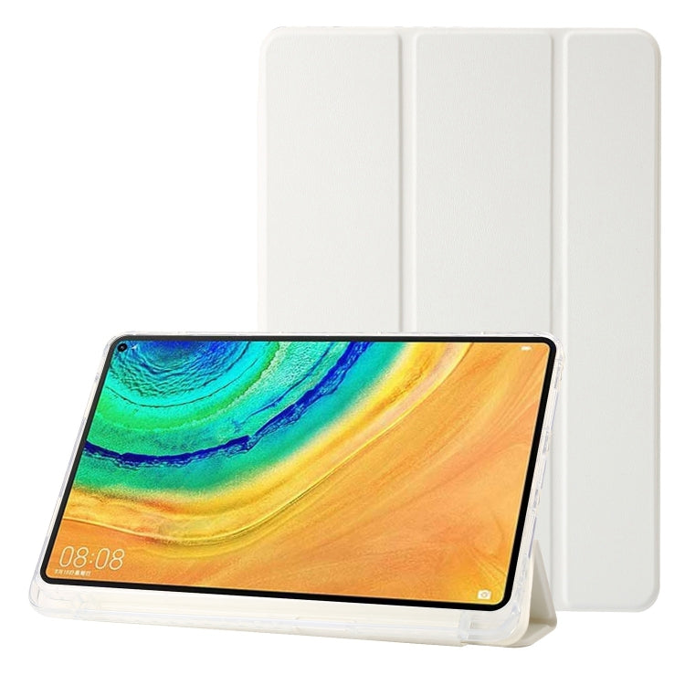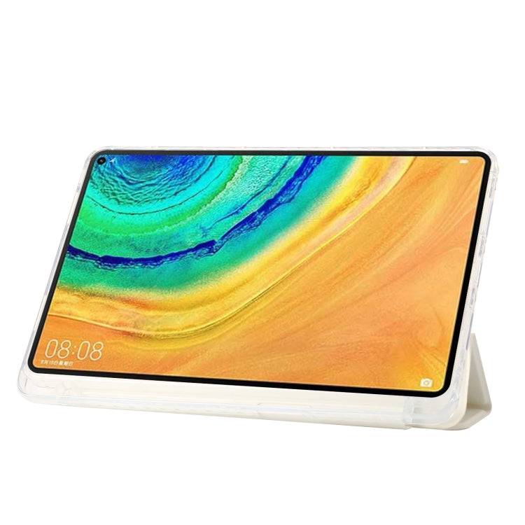 For Huawei Matepad 10.4 Clear Acrylic 3-Fold Leather Tablet Case(White)