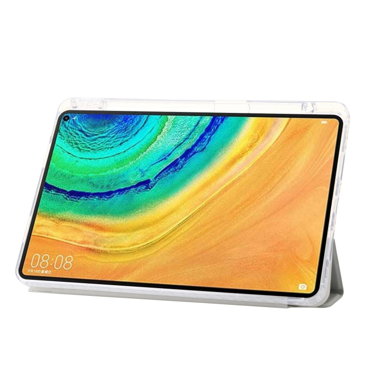 For Huawei Matepad 10.8 Clear Acrylic 3-Fold Leather Tablet Case(Grey)