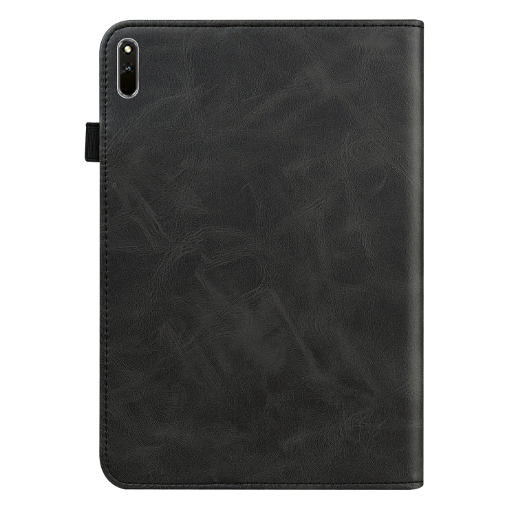 For Huawei MatePad 11 (2021) Solid Color Embossed Striped Leather Case(Black)
