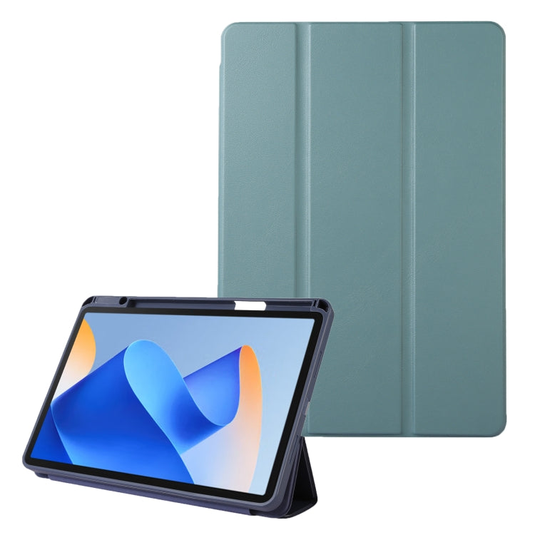 For Huawei MatePad 11 2023 Solid Color 3-folding Leather Tablet Case(Dark Green)