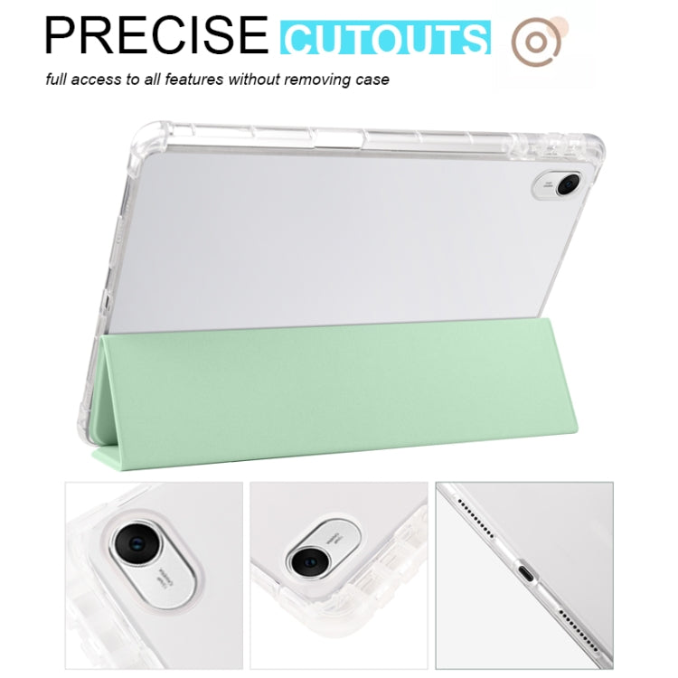 For Huawei MatePad 11.5S 3-folding Transparent TPU Smart Leather Tablet Case(Matcha Green)