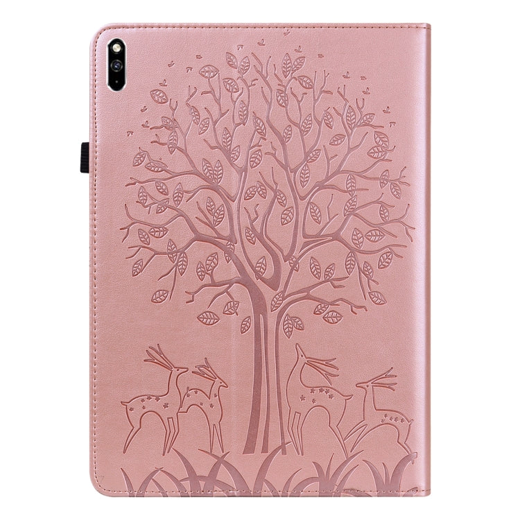 For Huawei MatePad Pro 10.8 2021 Tree & Deer Pattern Pressed Printing Horizontal Flip PU Leather Case with Holder & Card Slots(Pink)