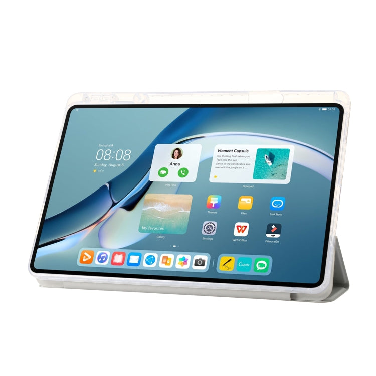 For Huawei MatePad Pro 13.2 2023 Clear Acrylic 3-Fold Leather Tablet Case(Grey)
