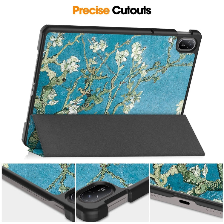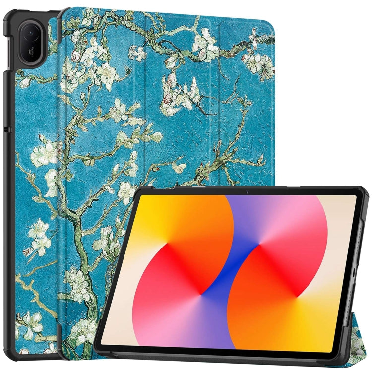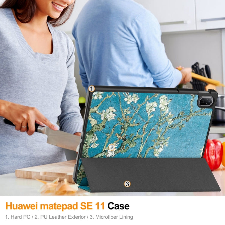 For Huawei Matepad SE 11 Painted 3-Fold Holder Smart Leather Tablet Case(Apricot Blossom)