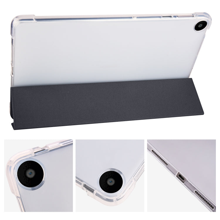 For Huawei MatePad SE 3-folding Transparent TPU Smart Leather Tablet Case with Pen Slot(Black)