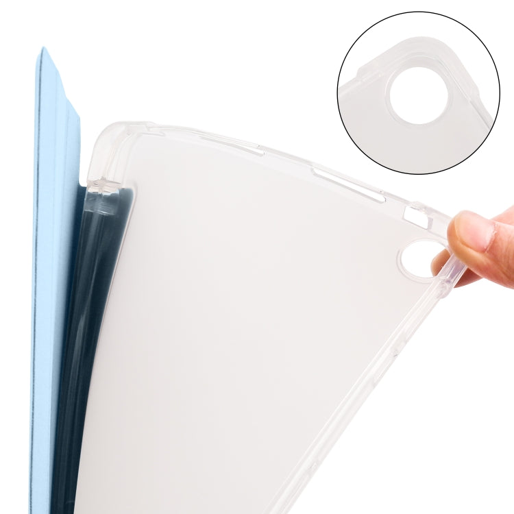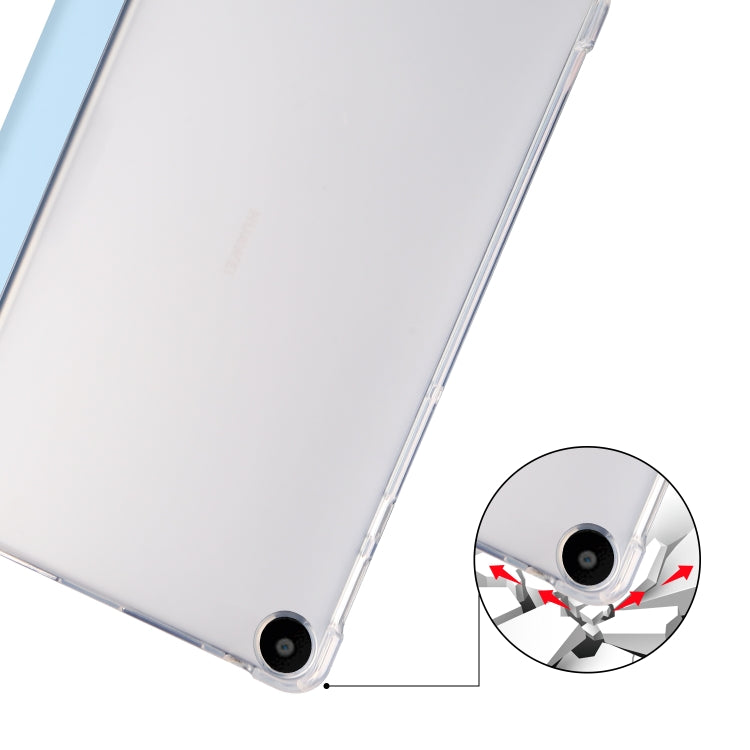 For Huawei MatePad SE 3-folding Transparent TPU Smart Leather Tablet Case with Pen Slot(Ice Blue)