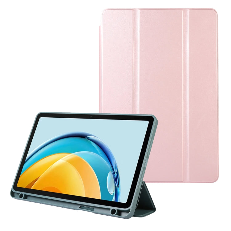 For Huawei MatePad SE Solid Color 3-folding Leather Tablet Case(Rose Gold)
