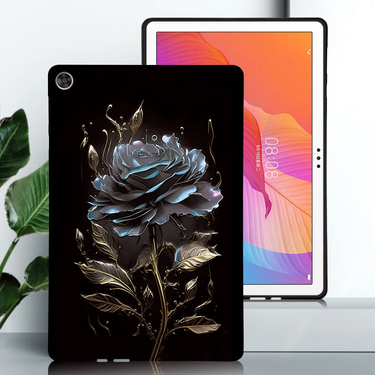 For Huawei MatePad T 10s Color Painting Pattern Smart Tablet TPU Case(Black Rose)