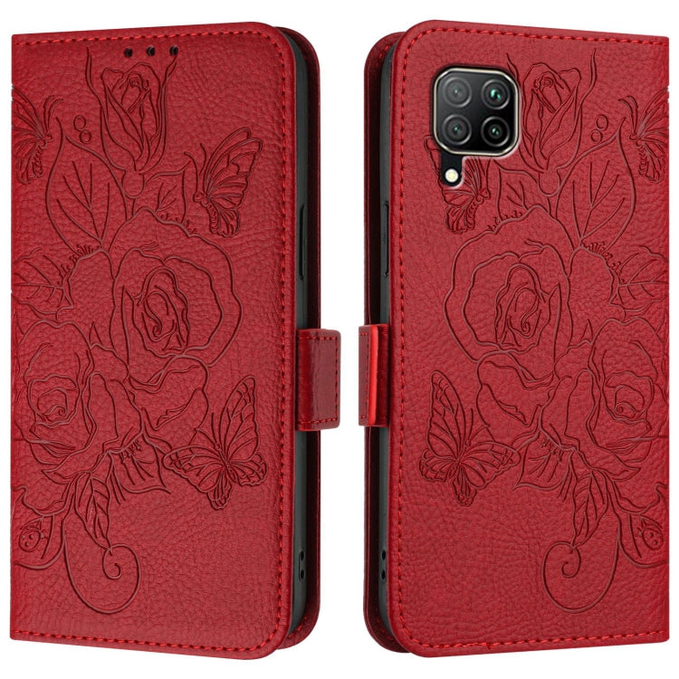 For Huawei P40 Lite / nova 6 SE Embossed Rose RFID Anti-theft Leather Phone Case(Red)