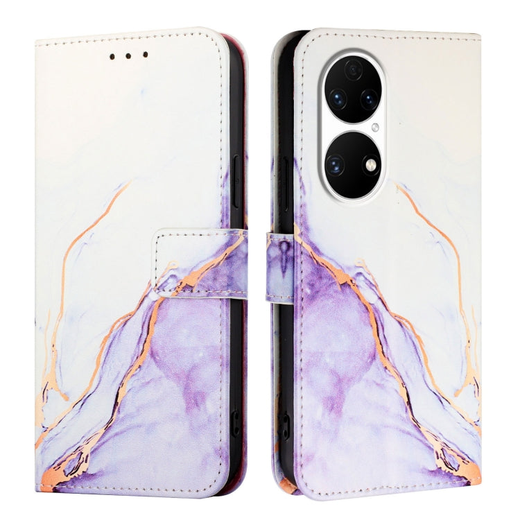 For Huawei P50 PT003 Marble Pattern Flip Leather Phone Case(White Purple)