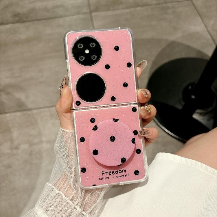 For Huawei Pocket 2 Glitter Powder Dots Pattern Phone Case with Holder(Rose Red)