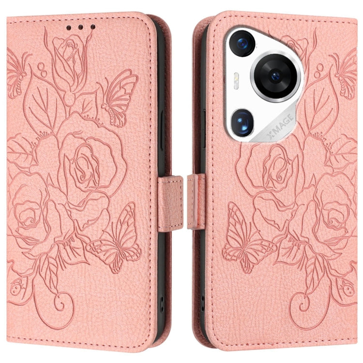 For Huawei Pura 70 Pro Embossed Rose RFID Anti-theft Leather Phone Case(Pink)