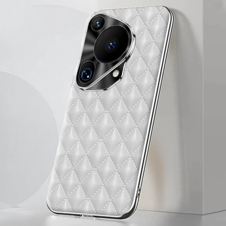 For Huawei Pura 70 Ultra Silver Edge Rhombic Texture PU Leather Phone Case(White)